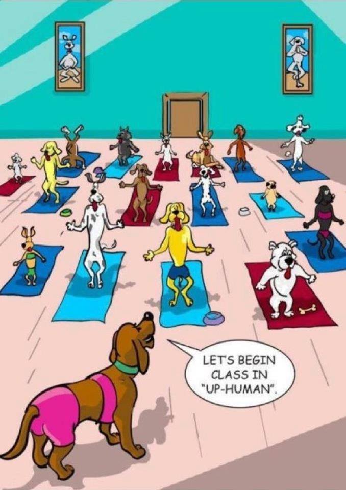 Dans les cours de yoga , on nous fait faire le >. mais dans les cours de yoga pour chien, on nous fait faire l’ >!!!