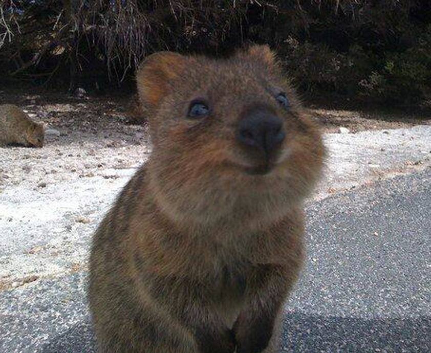 Juste pour le plaisir : le quokka est un adorable animal qui vit exclusivement en Australie ! Un marsupial assez petit, à peine 50 cm pour quelques 4 kg, entre la marmotte, le koala et une démarche de kangourou. Des petites oreilles et une tête toute ronde et cet incroyable sourire digne d’un dessin animé. Plutôt nocturne, il passe la journée à dormir !