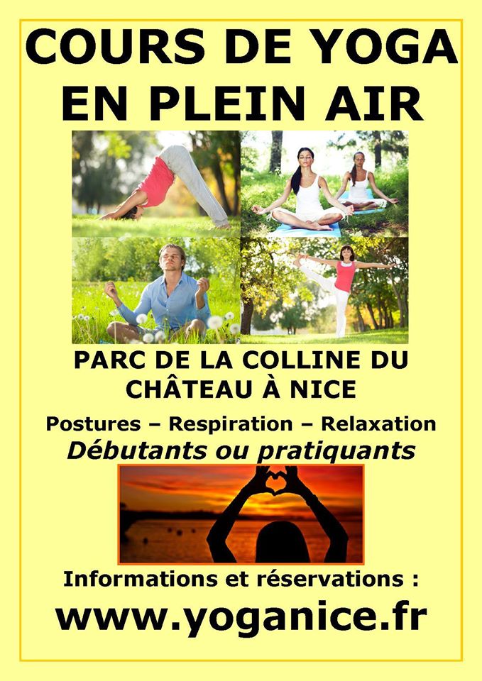 Encore plus de cours en plein air, à Nice, parc de la colline du château à Nice : tous les mercredis, samedis et dimanches. Animation : Isabelle Bourjac, professeur de la Fédération Française de Hatha-Yoga. Informations et réservations sur www.yoganice.fr